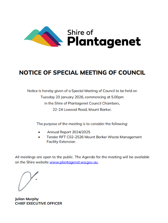 Special Meeting of Council - Tuesday 20 January 2026 - 5.00pm