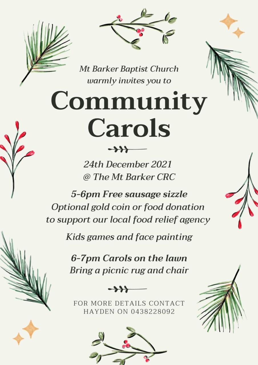 The Mt Barker Baptist Church will be partnering with our local food relief agency to support those in need this holiday season. You can give this Christmas by either making a cash donation at the sausage sizzle station or leaving food under the Christmas tree that will be set-up.